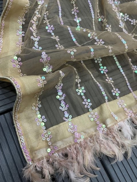OnlyTrend Embellished Sequinned Net Saree
