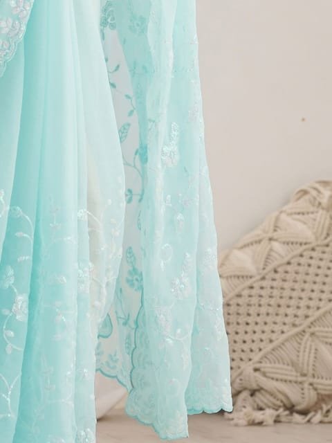 The saree is very beautiful and easy to carry.. The saree material was shiny which perfectly matched the sequence work..