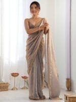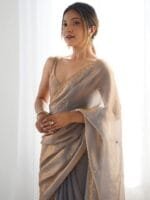 The blouse worn by the model might be for modelling purpose only. Check the image of the blouse piece to understand how the actual blouse piece looks like.