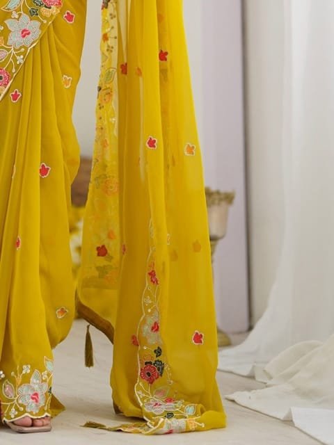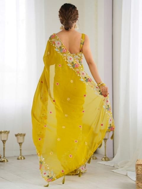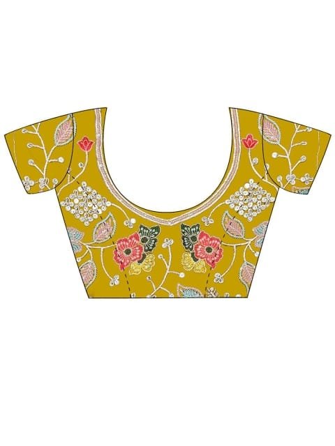 The blouse worn by the model might be for modelling purpose only. Check the image of the blouse piece to understand how the actual blouse piece looks like.