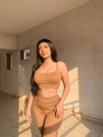 It is a two piece set with a crop top and flared pants . These make a perfect outfit for winter days and they fit perfectly as well as are made put of rib.