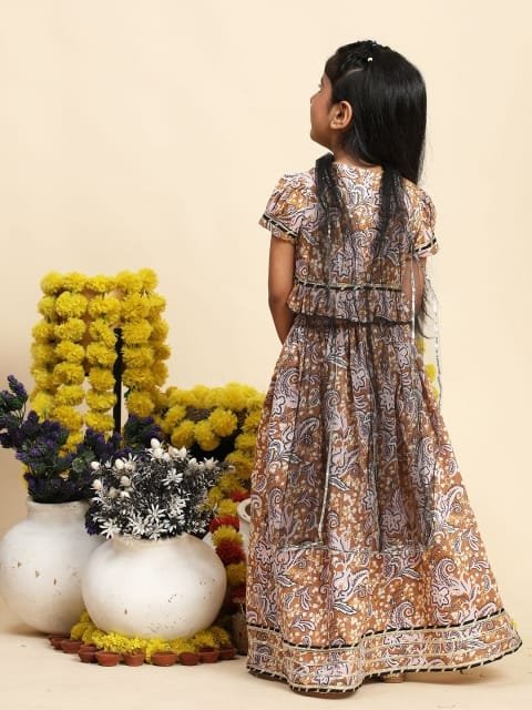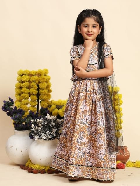 Mustard and white printed lehenga choli with dupatta, gotta patti