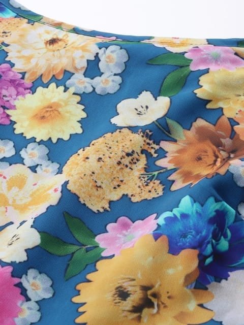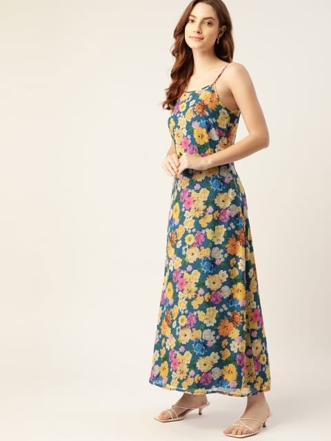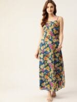 OnlyTrend Floral Printed Halter Neck Tiered Georgette Maxi Fit & Flare Dress