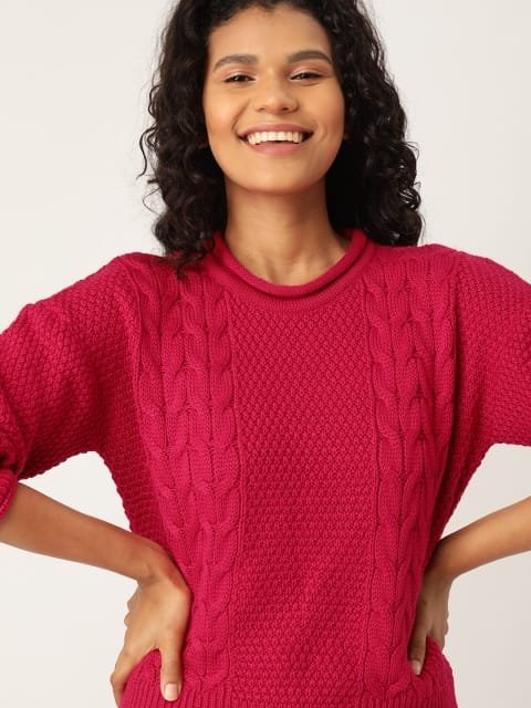 3 reviews for OnlyTrend Women Pink Self Design Pullover Sweater