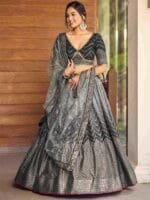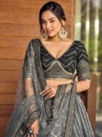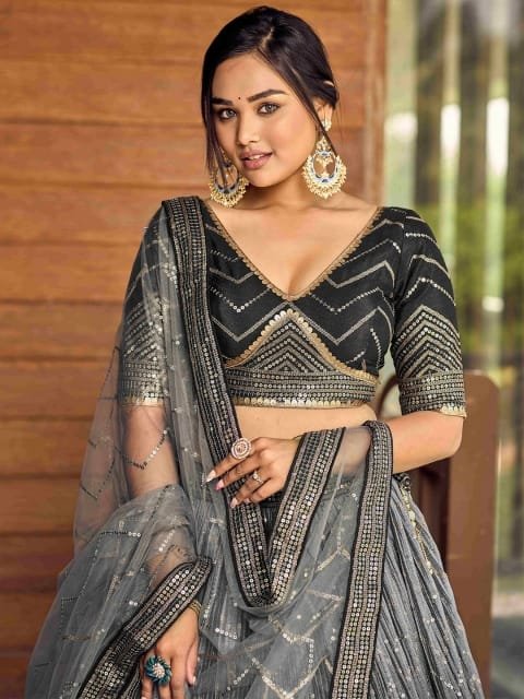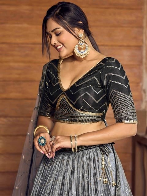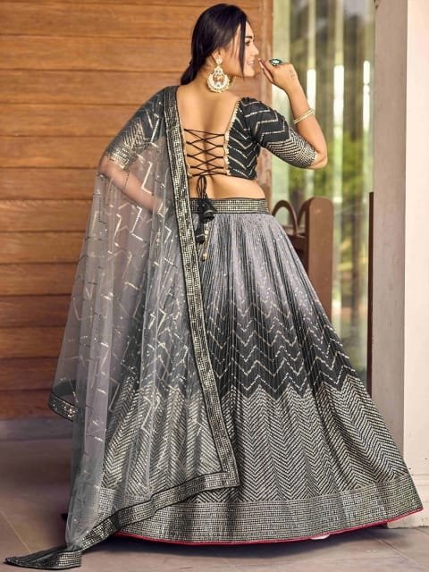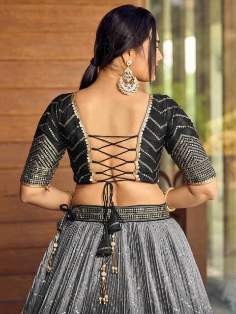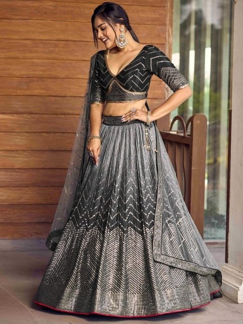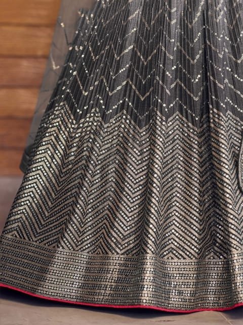 Black and silver-toned embellished lehenga choli with dupatta, sequinned