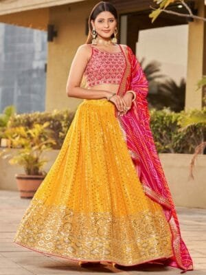 Lehenga(Semi-Stitched) Flair : 3.50 mtrs, waist-43″, height-43″