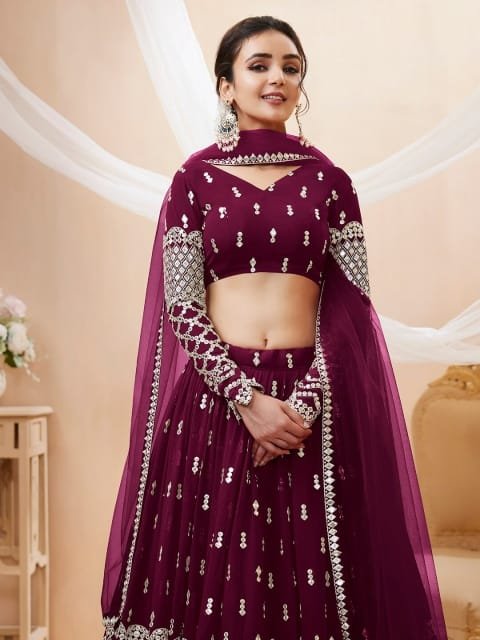 1 review for OnlyTrend Embroidered Mirror Work Semi-Stitched Lehenga Choli With Dupatta