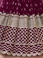 Purple and gold-toned embroidered semi-stitched lehenga, flared hem
