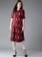Overall the kurta looks nice, the colour is beautiful. I’m a short girl…so it looks little longer on me comparatively. The cloth is not very thick and looks delicate but it’s soft. Needs starching after wash, also the water turns red on washing the kurta. Since it is cotton it seems comfortable for regular use.
