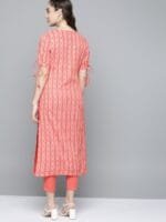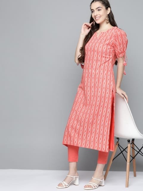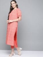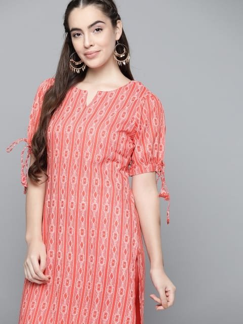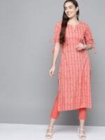 3 reviews for OnlyTrend Women Coral Orange & Off White Geometric Printed Straight Kurta