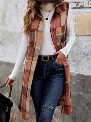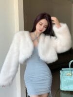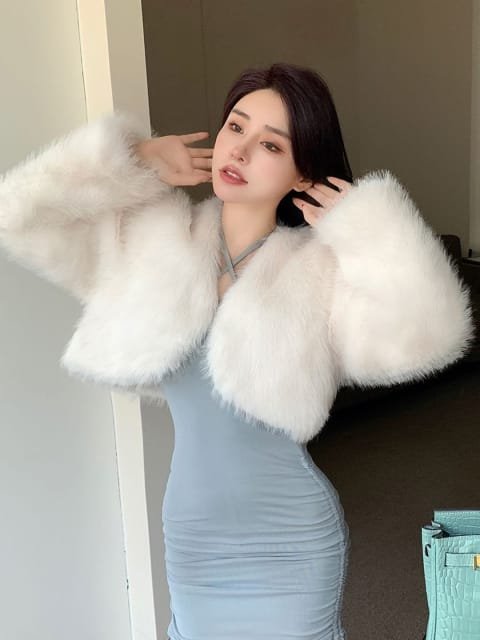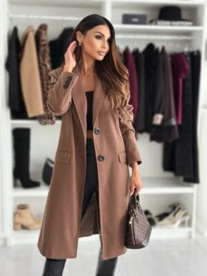 White solid front open overcoat, has notched lapel collar, long Sleeves a straight hem