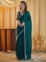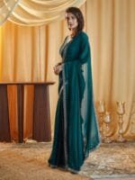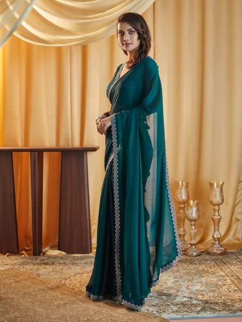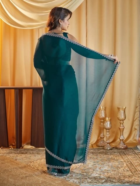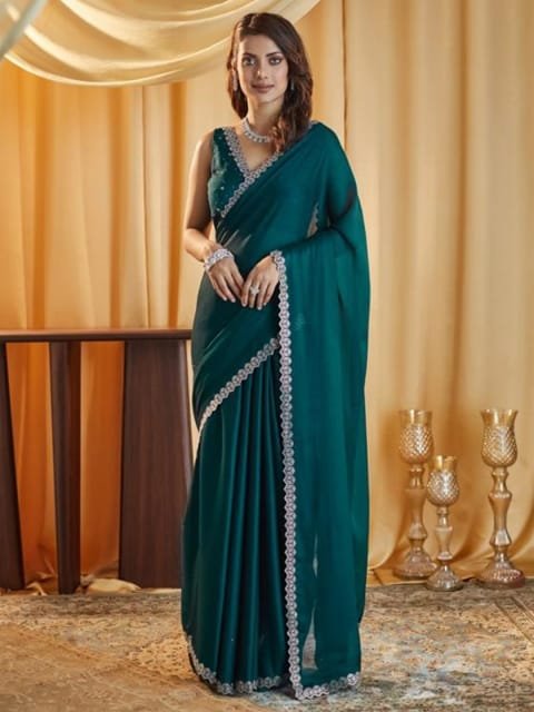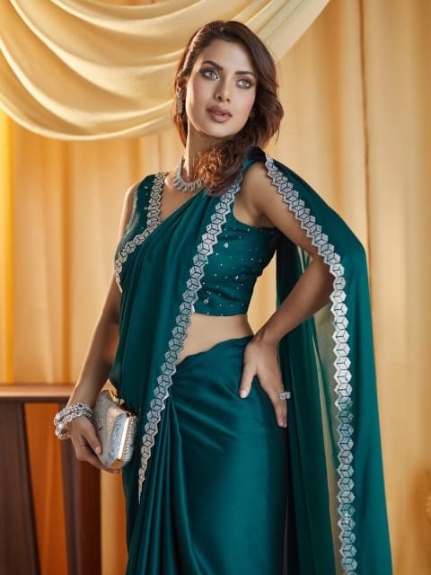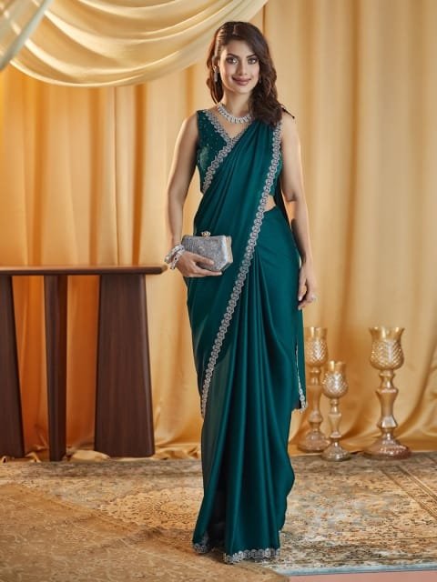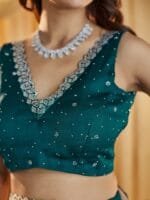 The blouse worn by the model might be for modelling purpose only. Check the image of the blouse piece to understand how the actual blouse piece looks like.