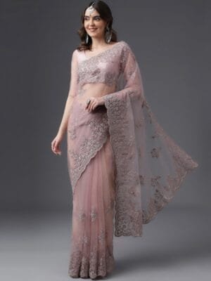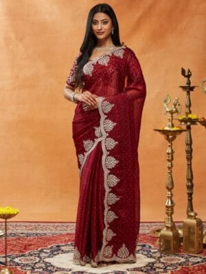- Embellished saree with embroidered border border
