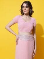The blouse worn by the model might be for modelling purpose only. Check the image of the blouse piece to understand how the actual blouse piece looks like.