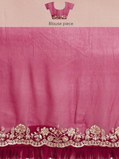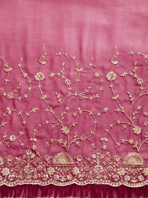 - Floral embroidered saree with embroidered border border