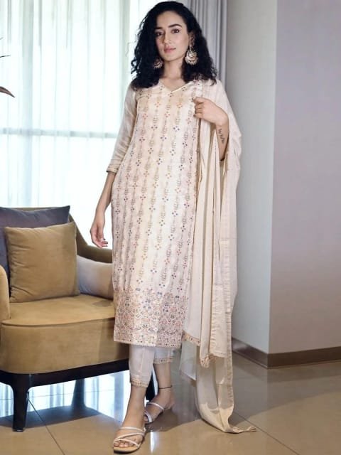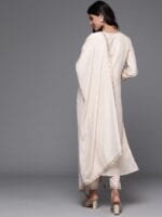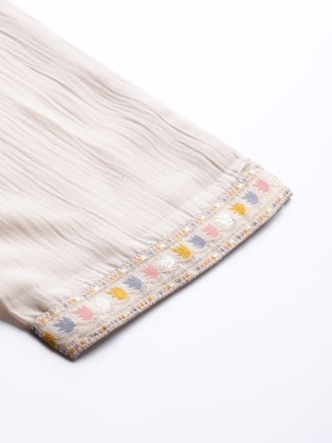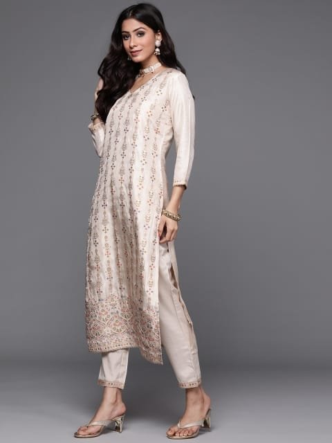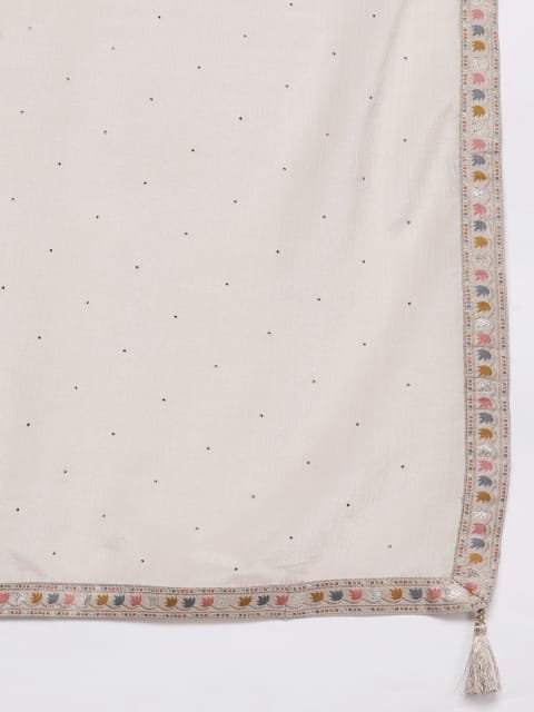 Beige woven design Kurta with Trousers with dupatta