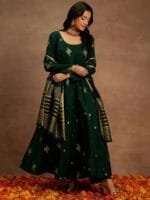 The fabric of the kurta is fantastic, The fabric quality of dupattaa 😍 and the occasion will influence your decision. Ideal to carry this kurta set to temples, 🧿 newly wed who love to wear can go for it, I personally preferred this set for Mastani look, if you don’t like the pant can exchange that with peach 💕pink or golden ❤🔥 colour..! 🎀 Personally i love the design of anarkali…rich look of golden embroidery…😘…!!