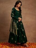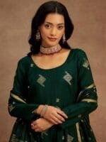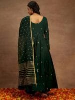 A beautiful anarkali kurta set with such a beautiful color. I love the color of this dress. Its soo different and unique. It has 24 kalis and the ghera is also really huge. A must buy. The fit is a bit loose for me. You can size down. The fabric is good and at this price you should definitely get it. Perfect for mehendi function. Its soo easy breezy and great for summer wedding events.