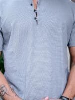 Nice and soft fabric.. There an inprint design which is lovely.. Good value for money T-shirt.. I bought size 44 normally i wear size 42 shirts.. Bcos I don’t like skinny fit