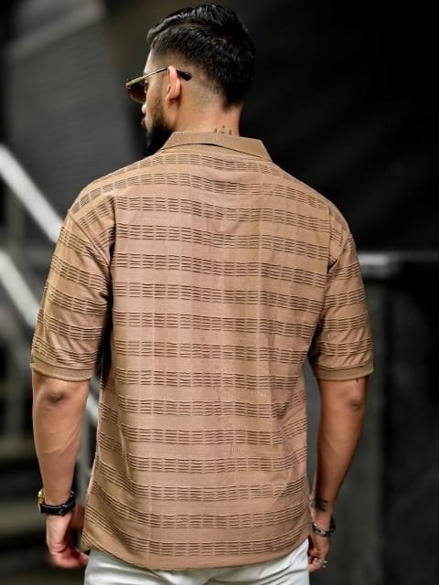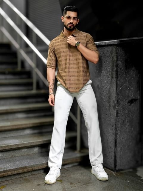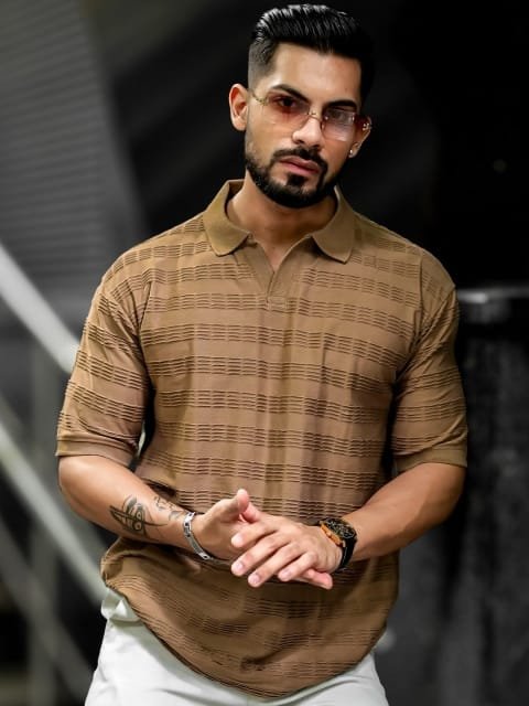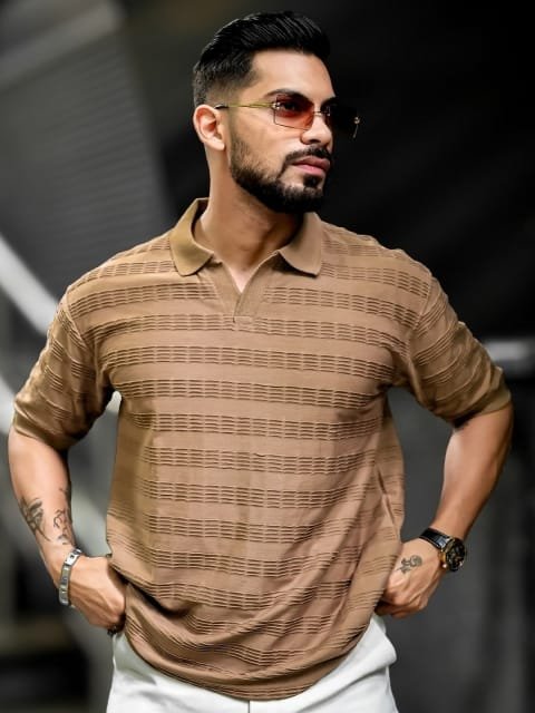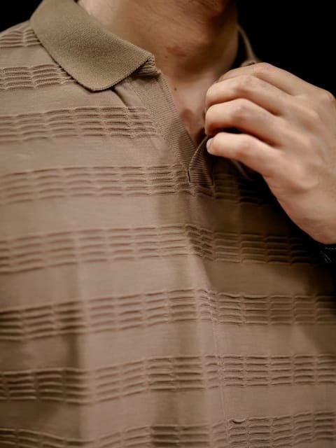 The fit is spot on, neither too tight nor too loose, giving it a nice tailored look without sacrificing comfort. The self-design polo style adds a touch of elegance, making it versatile enough for both casual outings and semi-formal events.