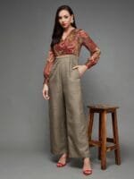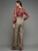 Waistband Detailing, Straight Leg, Back Closure, Cuffed Sleeve, Cuff Buttons