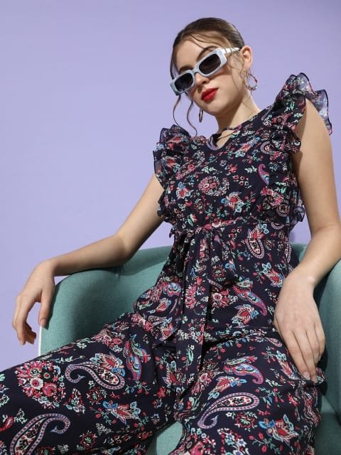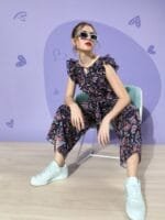 Very cute yet classy jumpsuit for day outs and perfect for summer as the bottoms are Palazzo alike which makes it breezy and breathable in summer !