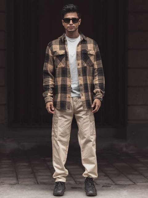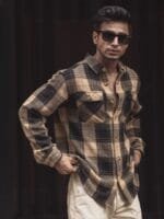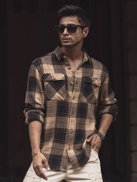 Black tartan checks checked opaque Casual shirt ,has a spread collar, button placket, 2 flap pocket, long regular sleeves, straight hem