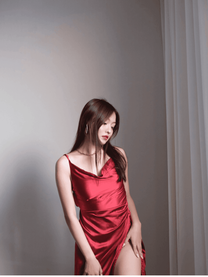 Red Datenight long satin dress