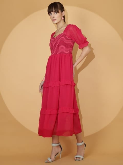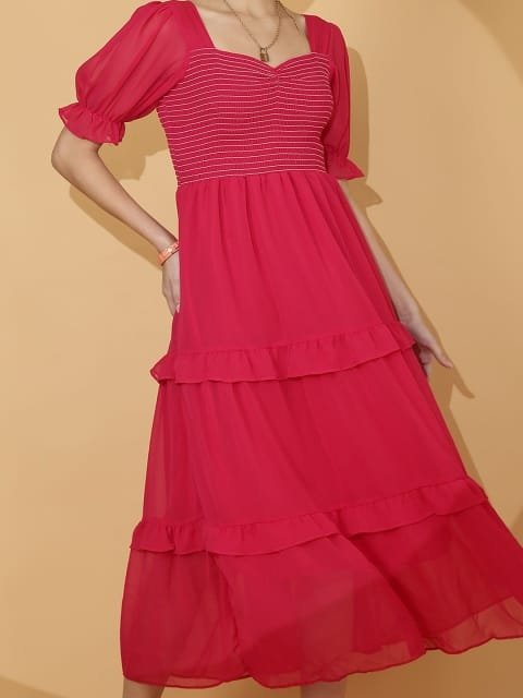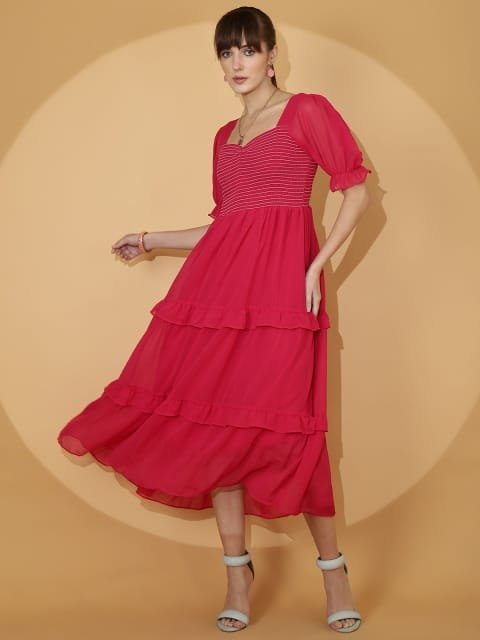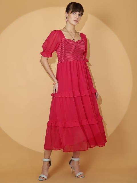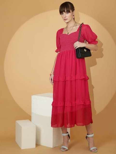 Be the first to review “OnlyTrend Puff Sleeve Georgette Fit & Flare Midi Dress”