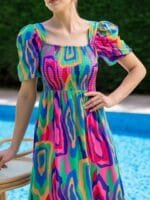 Beautiful dress with vibrant colours n very soft fabric..must buy without any second thought😊👍🏻