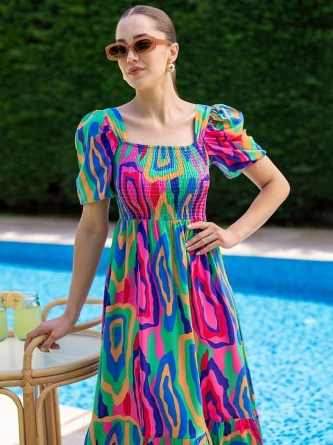 I got this beautiful dress by myntra ,I recently buy this and it’s so colorfull exact showing in the picture.