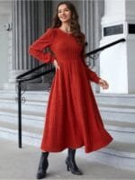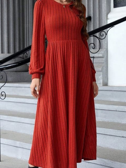 • Red solid a-line dress