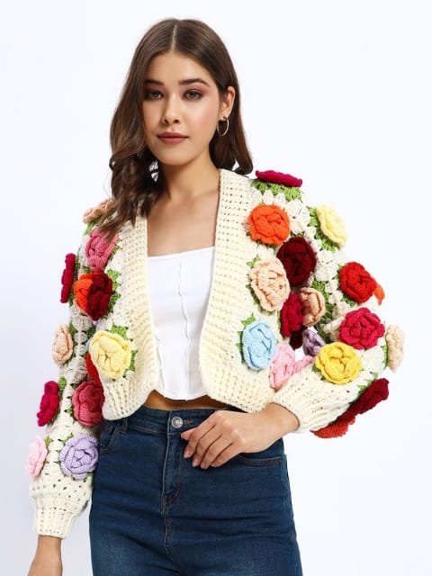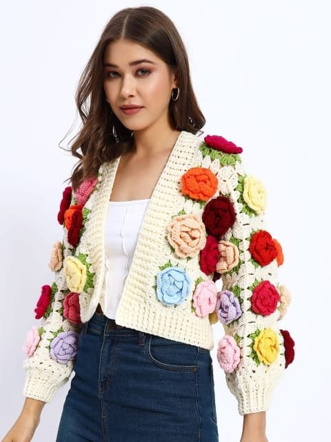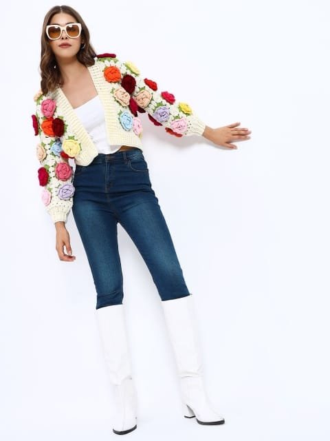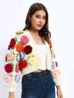 1 review for OnlyTrend Women Embroidered Woollen Crop Cardigan with Embroidered Detail