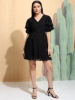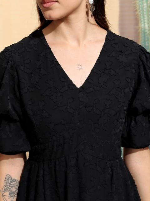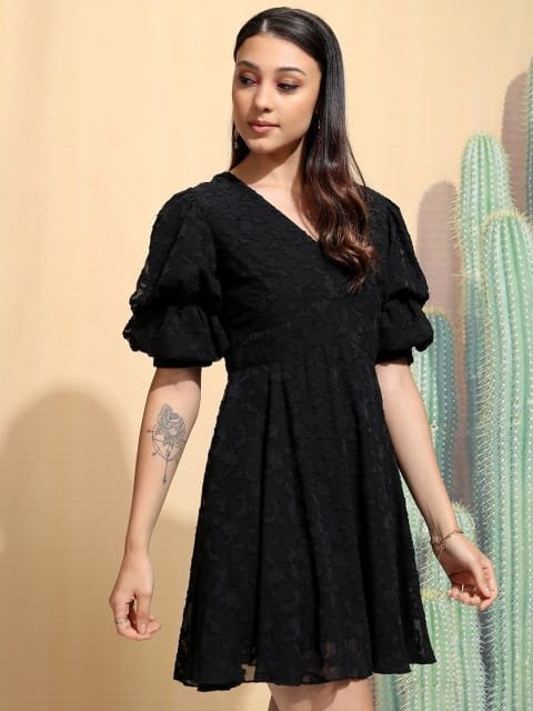 OnlyTrend Black & Pink Floral Shoulder straps Georgette Mini Dress